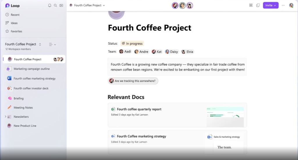 Once ideas move from exploration into action, teams need a way to manage shared content that continues to evolve. This is where Microsoft Loop is particularly effective.